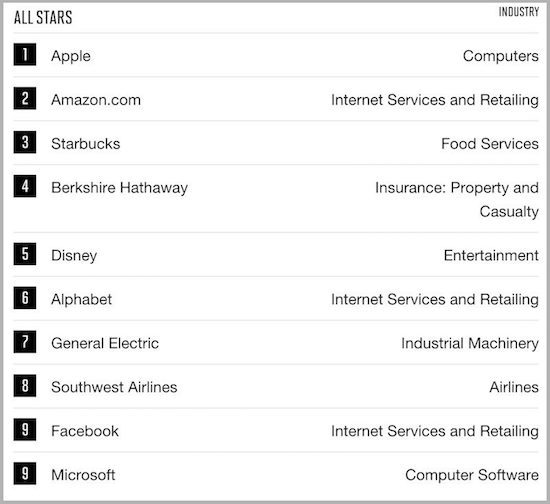 Apple zum zehnten Mal in Folge das am höchsten angesehenen Unternehmen der Welt