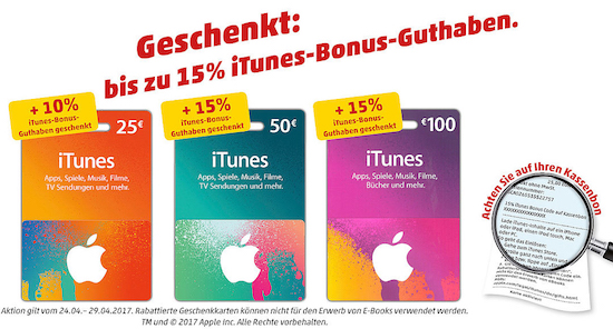Achtung: Leider kann ich die Hinweise auf die günstigen iTunes-Karten nicht in jedem einzelnen Fall überprüfen. Checkt daher bitte vorher noch einmal ab, ob die jeweilige Filliale den Rabatt auch tatsächlich gewährt!
