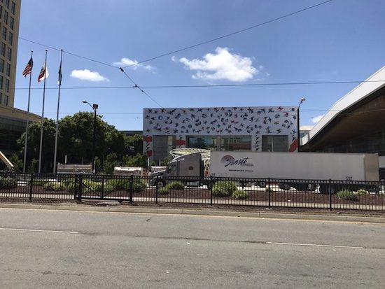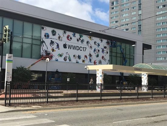 Inzwischen hat Apple damit begonnen, die Event-Location in San Jose für die WWDC zu dekorieren, wie die unten eingebetten Bilder vom McEnery Convention Center zeigen: