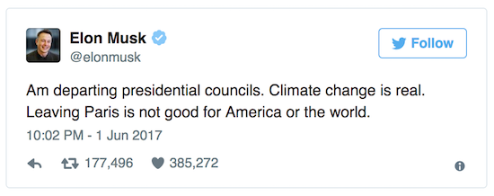I know many of you share my disappointment with the White House's decision to withdraw the United States from the Paris climate agreement. I spoke with President Trump on Tuesday and tried to persuade him to keep the U.S. in the agreement. But it wasn't enough.