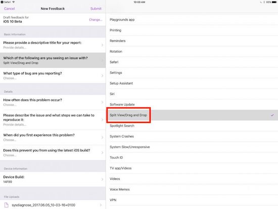 iOS 11: Eintrag in Feedback-App deutet auf "Drag and Drop"-Funktion für das iPad hin