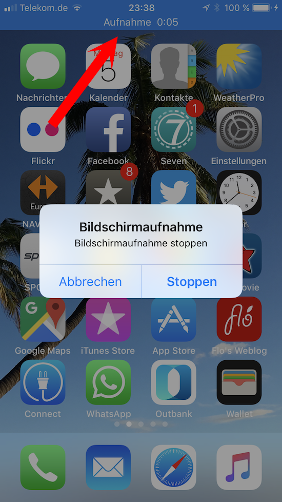 Wer beim letzten Artikel zum neuen Kontrollzentrum unter iOS 11 genau hingesehen hat, wird bemerkt haben, dass es in den Einstellungen einen Punkt namens "Screen Recording" gibt. Apple hat hier in der Tat eine neue Funktion integriert, die direkt auf dem Gerät eine Bildschirmaufzeichnung ermöglicht. Tippt man auf das Icon, startet unmittelbar eine neue Bildschirmaufnahme, die durch einen blauen Balken am oberen Bildschirmrand angezeigt wird. Tippt man auf diesen Balken, stoppt die Aufnahme und ein Pop-Up erscheint, in dem man gefragt wird, ob man die Aufnahme wirklich beenden möchte. Soll dies geschehen, wird die Aufnahme in der Fotos-App auf dem Gerät abgelegt.