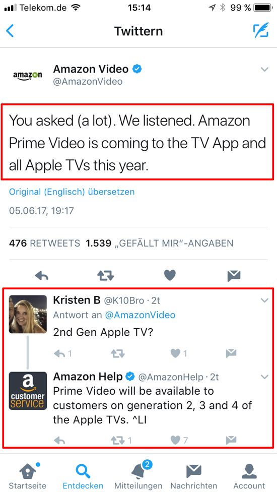 Einen konkreten Termin für die Verfügbarkeit von Amazon Prime Video auf dem Apple TV gibt es aktuell noch nicht. Die Tatsache, dass alle Generationen des Apple TV unterstützt werden, ist aber in jedem Fall als durchweg positiv zu bewerten.