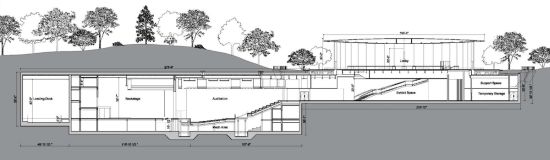 Im Auditorium selbst erwarten die 1.000 Gäste bequeme Ledersessel, von denen gemunkelt wird, dass jeder von ihnen schlanke 14.000 US-Dollar kosten soll. Im Eingangsbereich des Auditoriums befindet sich angeblich ein zunächst unsichtbarer Raum, welcher sich nach dem Event in eine Präsentationsfläche für die gerade vorgestellten neuen Produkte verwandelt. Einige Details zum unterirdischen Teil des Steve Jobs Theaters kann auch der nachfolgenden Grafik entnommen werden, die von der Stadt Cupertino veröffentlicht wurde.