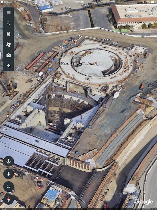 Google Maps zeigt das Steve Jobs Theater in spannender Bauphase