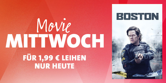 Auch heute hat Apple wieder den sogenannten "Movie Mittwoch" ausgerufen. Dabei wird jeden Mittwoch ein ausgewählter Film aus dem iTunes-Sortiment für 24 Stunden zum Sonderpreis von nur € 1,99 in HD-Qualität zum Leihen angeboten. Heute erhält man dabei das auf dem Marathon-Anschlag basierende Drama Boston mit Mark Wahlberg und Kevin Bacon. Nachdem man den Leih-Film geladen hat, kann er innerhalb von 30 Tagen angeschauen werden. Wie immer bei geliehenen Filmen aus dem iTunes Store gilt: Hat man hiermit einmal begonnen, muss man ihn innerhalb von 48 Stunden beenden.
