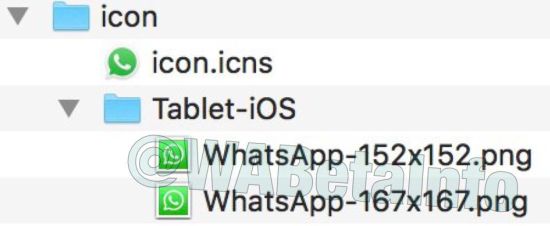 Ich kenne nicht wenige WhatsApp-Nutzer, die sich über eine offizielle App des Messengers auf dem iPad wie kleine Kinder freuen würden. Hatte WhatsApp-Erfinder Jan Koum in der Vergangenheit bereits mehrfach betont, dass eine Tablet-Version nicht geplant sei und man stattdessen weiter das Smartphone im Mittelpunkt des Interesses sehe, könnte nun ein Umdenken erfolgt sein. So haben die Kollegen von WABetaInfo in der am Wochenende veröffentlichten neuen Version der offiziellen Mac-App (kostenlos im Mac AppStore) recht eindeutige Hinweise darauf gefunden, dass eine iPad-Version von WhatsApp in Arbeit sein könnte. So findet sich in den Innereien der App ein Ordner mit der Beschriftung "Tablet-iOS", in dem sich Icons in passenden Größen für das iPad befinden.