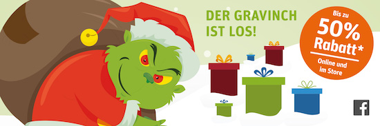 Auch nach Cyber Monday Woche, Black Friday und Cyber Monday ist natürlich noch lange nicht Schluss mit den weihnachtlichen Rabatten bei den einschägigen Online-Shops. So ist es nun der Apple-Fachhändler Gravis, der eine neue Aktion unter dem Motto "Gravische Weihnachten - Der Gravinch ist los!" aufgelegt hat. Dabei lassen sich dieverse durchaus interessante Produkte aus dem Sortiment des Online-Shops um bis zu 50% reduziert erwerben. Alle spannenden Produkte finden sich auf der Übersichtsseite oder in der nachfolgenden Liste: