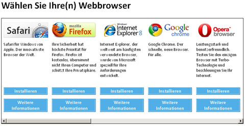 Ab heute wird Microsoft in Europa Schritt für Schritt per Update ein Auswahlfenster auf Rechner mit Windows-Betriebssystem ausrollen, welches den Benutzer zur Auswahl eines Standard-Browsers auffordert. Nötig wird dies durch einen Beschluss der EU, die eine Konkurrenzbehinderung in der standardmäßigen Installation des Internet Explorers auf Rechnern mit Windows-Betriebssystemen sah. In der Auswahl zu finden sind die Platzhirsche Internet Explorer 8, Firefox, Google Chrome, Safari und Opera, aber auch die weniger bekannten Browser Flock, Maxthon, K-Meleon, Flashpeak, Avant, Sleipnir und GreenBrowser. Ich für meinen Teil setze sowohl unter Windows, als auch unter Mac OS X seit Jahren auf den Firefox und habe auch keinen Grund, dies zu ändern. Ohnehin sehe ich in der Anordnung der EU nichts anderes als eine weitere Demonstration darin, wer das Sagen hat. Als ob die dortigen Politiker keinen wichtigeren Probleme zu lösen hätten. Die freie Browserwahl bestand auch schon vor dem Beschluss und wird aus meiner Sicht durch das demnächst auftauchende Auswahlfenster auch nicht weiter gepusht. Zumal viele Nutzer, Sicherheitsbedenken und Geschwindigkeitsdefizite hin oder her, mit dem Internet Explorer zufrieden sind. Dies liegt vermutlich zu einem großen Teil an der Bequemlichkeit, da der IE ja bereits mit installiert wird. Ob sich an dieser Bequemlichkeit aber durch das besagte Auswahlfenster etwas ändern wird, würde ich doch mal stark bezweifeln. Wer nicht auf das Roll-Out durch Microsoft warten möchte, kann auch jetzt schon unter browserchoice.eu einen Blick darauf werfen.