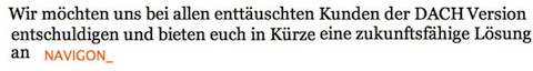 UPDATE vom 14. April: Navigon hat per Facebook bekannt gegeben, dass man sich für eine Lösung entschieden habe und die nun versucht umzusetzen: