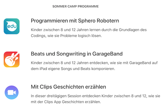 Anmeldungen für die Sommercamps können ab sofort auf Apples Sommercamp Sonderseite getätigt werden.