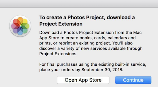 So taucht in der Fotos-App unter macOS 10.13.6 inzwischen ein Hinweis auf, dass die letzten Bestellungen über den Dienst nur noch bis zum 30. September2018 entgegengenommen werden. In macOS Mojave, welches im Herbst erscheint und auch ein Update für die Fotos-App enthält, gibt es schon überhaupt keine Referenzen mehr auf den seit 16 Jahren angebotenen Dienst mehr. Apple empfiehlt, sich schon einmal nach Alternativen umzuschauen, die es beispielsweise auch in Form von Erweiterungen für die Fotos-App unter macOS gibt. (via 9to5Mac)