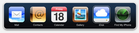 Statt der Toolbar oben links gibt es dort nun nur noch einen einzigen Button, den sogenannten App-Switcher, welcher nach Betätigung ein Auswahlmenü der verfügbaren Web-Apps anzeigt. Der Button selbst ist eine Miniaturansicht des MobileMe-Icons.