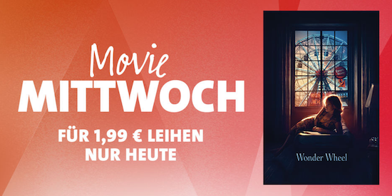 Auch heute hat Apple wieder den sogenannten "Movie Mittwoch" ausgerufen. Dabei wird jeden Mittwoch ein ausgewählter Film aus dem iTunes-Sortiment für 24 Stunden zum Sonderpreis von nur € 1,99 in 4K-HDR-Qualität zum Leihen angeboten. Heute erhält man dabei das toll gespielte Drama Wonder Wheel mit Justin Timberlake und Kate Winslet. Nachdem man den Leih-Film geladen hat, kann er innerhalb von 30 Tagen angeschauen werden. Wie immer bei geliehenen Filmen aus dem iTunes Store gilt: Hat man hiermit einmal begonnen, muss man ihn innerhalb von 48 Stunden beenden.