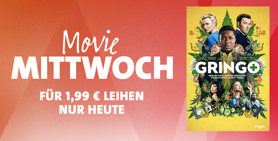 Auch heute hat Apple wieder den sogenannten "Movie Mittwoch" ausgerufen. Dabei wird jeden Mittwoch ein ausgewählter Film aus dem iTunes-Sortiment für 24 Stunden zum Sonderpreis von nur € 1,99 in HD-Qualität zum Leihen angeboten. Heute erhält man dabei die Action-Komödie Gringo mit Charlize Theron um einen Normalo, der zum Outlaw wird. Nachdem man den Leih-Film geladen hat, kann er innerhalb von 30 Tagen angeschauen werden. Wie immer bei geliehenen Filmen aus dem iTunes Store gilt: Hat man hiermit einmal begonnen, muss man ihn innerhalb von 48 Stunden beenden.