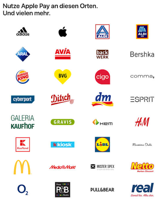 Auf der oben verlinkten Webseite lüftet Apple inzwischen auch das Geheimnis, welche Kreditkarten und Banken und welche Geschäfte zum Start von Apple Pay mit an Bord sein werden. Während seämtliche gängigen Kreditkarten unterstützt werden, gibt Apple bei den Banken aktuell unter anderem N26, die Deutsche Bank, Comdirect oder die HypoVereinsbank an.