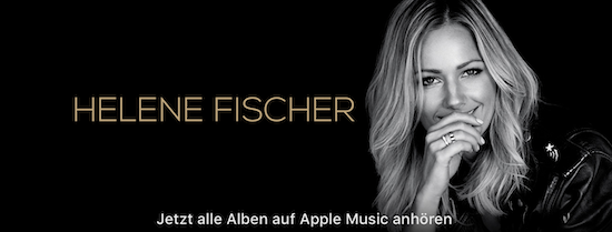 Erst vor wenigen Tagen durften sich Freunde deutscher Punk-Musik freuen, da nun auch der Katalog der Ärzte nach Jahren der Verweigerung über die verschiedenen Streaming-Dienste, wie Spotify, Apple Music und Co. verfügbar ist. Nun trifft dies auch auf Freunde des deutschen Schlagers zu, denn seit gestern findet man nun auch den kompletten Katalog von Helene Fischer auf diesem Wege. Nutzer von Apple Music können sich dabei gleich doppelt freuen, konnte sich Cupertino doch auch gleich noch die Exklusiv-Rechte für diverse Videos der deutschen Schlager-Queen sichern. Konkret handelt es sich dabei um die ersten drei Videoalben mit insgesamt 89 Videos, darunter das Weihnachtskonzert in Wien.