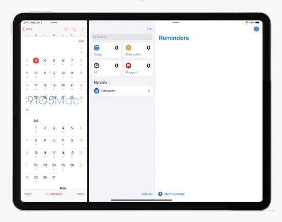 Eine größere Überarbeitung erfährt zudem die Erinnerungen-App, die mit macOS 10.15 auch erstmals auf den Mac springen soll. Auf dem iPad präsentiert sich die App künftig mit einer großen Seitenleiste, in der sich verschiedene Boxen für "Heute", "Geplant" , "Markiert" und "Alle" befinden.