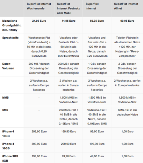 UPDATE: Inzwischen hat Vodafone per Pressemitteilung auch die Konditionen für die iPhone-Tarife bekannt gegeben. Diese gleichen in weiten Teilen den ohnehin bisher gemunkelten Preisen. Hier alle Tarife im Überblick: