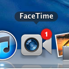 Verpasst man den Anruf, weist einen das FaceTime-Icon im Dock darauf hin, in dem es (ähnlich wie z.B. auch bei Mail) ein Badge bekommt, welches die Anzahl der entgangenen Anrufe signalisiert: