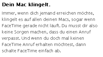 Apple weist hierauf auch explizit auf den Info-Seiten zu FaceTime für Mac hin.