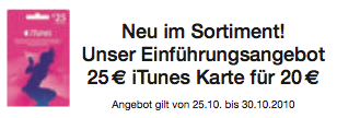 Angebot hat. Beim Kauf einer € 25,- iTunes-Karte muss man diese Woche