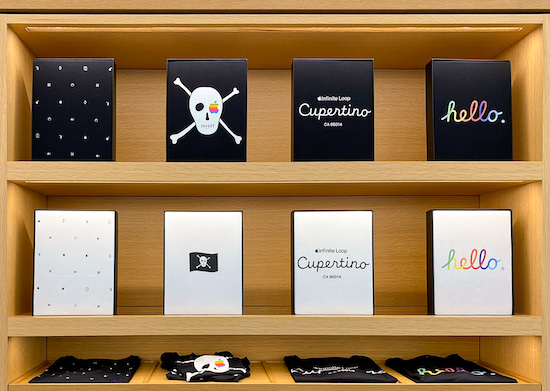 Weitere T-Shirts werden von dem klassisch-bunten Apple-Logo, der klassischen Apple-Schriftart und dem Aufdruck "Infinite Loop" geziert und erinnern damit an die frühen 2000er Jahre des Unternehmens und seine Zentrale an der Adresse "1 Infinite Loop Cupertino". Die Shirts sind exklusiv im Apple Store am Besucherzentrum des Apple Park erhältlich und erfreuen sich dort traditionell großer Beliebtheit. (via 9to5Mac)