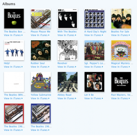 Noch ist es nicht 16:00 Uhr, doch die für dann versprochene große Ankündigung scheint sich bereits abzuzeichnen. Anscheinend dreht es sich dabei tatsächlich (unter anderem) um die Aufnahme des kompletten Beatles-Katalogs in den iTunes Store. Ab sofort sind dort die