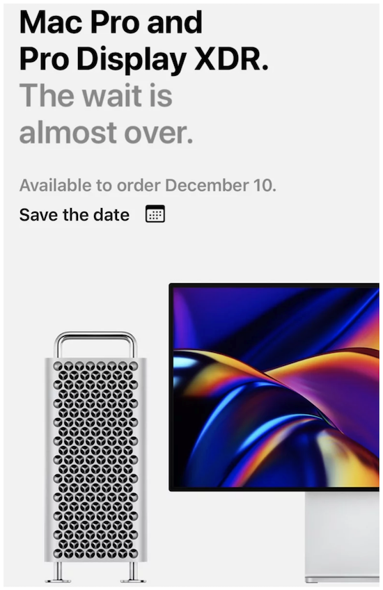 Lange mussten wir uns gedulden, ehe wir wussten, wann Apple seinen neuen modularen Mac Pro und das zugehörige Pro Display XDR in den Verkauf bringen wird. Bislang hieß es lediglich "im Dezember". Nun ist Katze jedoch aus dem Sack und beide Geräte werden sich ab kommendem Dienstag, den 10. Dezember bestellen lassen. Dies geht aus einer "Save the Date" E-Mail hervor, die Apple seit der vergangenen Nacht an interessierte Kunden verschickt. Apple hatte den neuen Mac Pro bereits vor über zwei Jahren angeteasert und auf der WWDC im Sommer offiziell vorgestellt. Bei der Entwicklung hat man sich wieder explizit an den professionellen Nutzern orientiert und stellt diesen mit dem neuen Gerät eine echte Power-Maschine zur Verfügung, die sich zudem nach eigenen Wünschen modular aufrüsten lässt. Der Preis für das Basismodell beginnt bei 5.999,- US-Dollar, der des 6K Pro Display XDR bei 4.999,- Dollar. Für weitere 999,- Dollar bekommt man auch noch einen Ständer dazu. (via MacRumors)