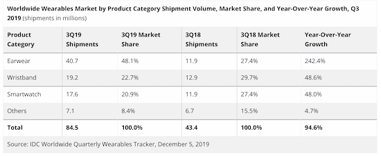 Apple dominiert auch im dritten Quartal 2019 den Markt der Wearables