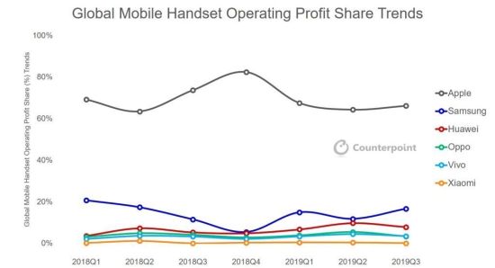 Insgesamt ist der Smartphone-Makrt, zumindest was den Gewinn betrifft, im dritten Quartal 2019 allerdings weiter geschrumpft. Gegenüber dem Vorjahr betrug der Rückgang dabei 11% - vor allem weil mehr und mehr Nutzer offenbar zu Mittelklassemodellen statt zu den Flaggschiffen der jeweiligen Hersteller greifen. Dies betrifft sowohl die Umsätze als auch den Gewinn, woran sich auch Apple in den kommenden Jahren verstärkt wird orientieren müssen. Mit dem großen Erfolg des iPhone 11 ist man den ersten Schritt in diese Richtung dieses Jahr bereits gegangen.