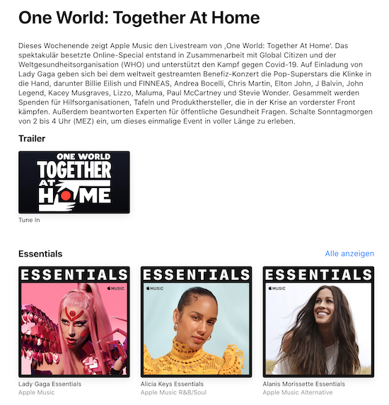 "One World: Together at Home" - Mega-Wohnzimmerkonzert gegen Corona heute Nacht live auf Apple Music