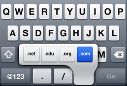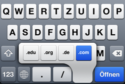 So langsam aber sicher kommen die neuen kleinen Features der neuen 2.0 Version des iPhone OS zum Vorschein, die letzte Nacht von Apple als Beta an Entwickler verteilt wurde. So hat sich heraausgestellt, dass bei der Eingabe von Internetadressen nun weitere Domainkürzel zur Verfügung stehen wenn man die ".com"-Taste gedrückt hält. Dabei unterscheidet das iPhone zwischen den Landeseinstellungen der Tastatur und gibt entsprechend unterschiedliche Kürzel vor. Im Anschluss die Screenshots der US- und der deutschen Tastatur. Wer hierzulande jedoch die .edu Endung benötigt ist mir noch ein wenig schleierhaft... (Hinweis via fscklog)