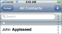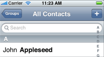 Mit der letzten Version des iPhone OS, bzw. des iPhone Simulators wurde auch endlich die lang ersehnte Kontaktsuche eingeführt. Häufigster Kritikpunkt war dabei die Tatsache, dass die Buchstabenleiste auf der rechten Seite in das Suchfeld hineinragte. In der letzte Nacht veröffentlichten Version hat Apple die Kontaktsuche nun überarbeit und optimiert, so dass dieser optische Bug behoben wurde. Anschließend die entsprechenden beiden Screenshots (oben alt, unten neu).