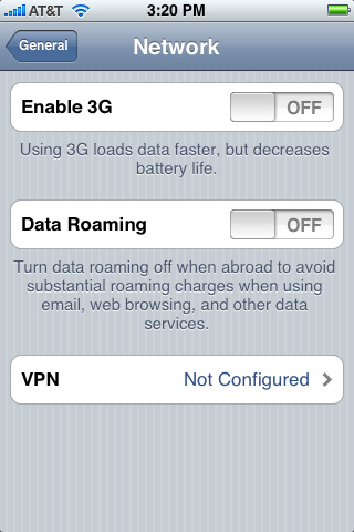 Nun ja, ein großes Geheimnis war es ja eigentlich schon länger nicht mehr: Das neue iPhone, welches irgendwann in den kommenden Wochen erwartet wird, wird 3G-fähig sein (im deutschen Sprachgebrauch UMTS unterstützen). Einzig die endgültige Bestätigung fehlte noch. Zwar wurden immer mal wieder Codeschnipsel präsentiert, die auf 3G hindeuteten. Diese hätten aber auch einfach bei Copy&Paste vorsorglich in den Code gschrieben worden sein können. Nun präsentiert Macrumors einen Screenshot, der aus den Einstellungen der aktuellen Firmware (2.0 Beta 5) stammen soll und die Möglichkeit der Aktivierung von 3G zeigt. Das "große Geheimnis" ist nun also endgültig keines mehr und wir können uns wieder dem wirklich spannendem widmen: Dem Erscheinungsdatum...