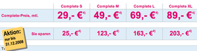 eines Complete-Vertrages an. So wird in den Tarifen Complete M,