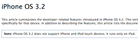 UPDATE: Die Release-Notes lösen inzwischen ein Rätsel auf. Das iPhone OS in Version 3.2 wird einzig und allein auf dem iPad laufen. Für iPod und iPod touch sind demnach keine Versionen 3.2 geplant. Wie es auf den beiden Plattformen weitergehen wird, werden wir vermutlich bei einem weiteren Special Event zum Thema iPhone OS 4.0 Anfang März erfahren.