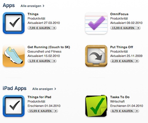 Das iPad geht zwar offiziell erst übermorgen in den USA in den Verkauf, der AppStore ist seiner Zeit aber schon voraus. Seit wenigen Minuten sind die ersten iPad Apps zum Kauf verfügbar. Zwar benötigt man selbstverständlich ein iPad um sie nutzen zu können, wer aber die Apps-Sektion seiner Mediathek bereits jetzt mit Apps bestücken möchte, die er ohnehin kaufen wird, kann dies nun tun (kleiner Tipp: Harbor Master HD ist aktuell (noch) kostenlos). Die Suche nach Apps, die sowohl für iPhone und iPod touch, als auch das iPad verfügbar sind, liefert nun die Ergebnisse in verschiedene Bereiche aufgeteilt (oberer Screenshot). Auch innerhalb der Mediathek werden die Apps nun in verschiedene Bereiche aufgeteilt, ähnlich wie man es schon von den verschiedenen Bereichen für iPhone-Apps und Clickwheel iPod-Spiele (unterer Screenshot). Zudem hat Apple bereits die AppStore Nutzungsbedingungen angepasst, die bei einem Kauf erneut bestätigt werden wollen. Die Preisstruktur deutet hingegen einen Trend weg von den Ramsch-Preisen an. Ob sich dies auf Dauer durchsetzen wird, muss sich erst noch zeigen.