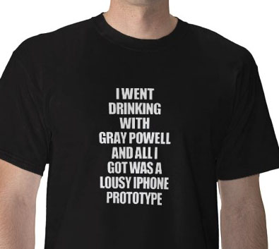 Das hätte sich der gute Gray Powell vor ein paar Tagen wohl auch nicht träumen lassen. Eben noch verliert der Apple Software-Entwickler einen iPhone-Prototypen in einer deutschen Kneipe in Kalifornien und bangt um seinen Job und schon ist er der neue Star im Web. Dabei hätte wohl niemand jemals von ihm Notiz genommen, hätte er vor seinem folgenreichen Verlust nicht noch schnell per Facebook seinen Freunden mitgeteilt, dass er unterschätzt habe, wie gut deutsches Bier schmecke. Somit wusste innerhalb kürzester Zeit das halbe Web, wem wir den Super-Leak zu verdanken haben. Und so ist Gray inzwischen zum heimlichen Star im Web aufgestiegen. Nicht nur diverse Facebook-Fangruppen tragen inzwischen seinen Namen, auch ein eigenes T-Shirt ist ihm inzwischen gewidmet. Aufschrift: "I went drinking with Gray Powell and all I got was a lousy iPhone Prototype". (danke für eure Mails!)