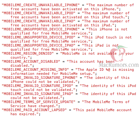 Passwort hinterlegen. Im am Donnerstag erschienenen GM-Build von iOS 4.2.1 und auch verschiedenen Beta-Versionen von iOS 4.2 werden die Fundstücke nun sogar noch ein Stückchen konkreter. Macrumors fand hier ein neues Framework unter dem Namen "AppleAccounts.framework", welches unter anderem verschiedene, lokalisierte Fehlermeldungen zu MobileMe enthält. Unter anderem sind dort die Meldungen "This iPhone is not qualified for free MobileMe service." oder "The maximum number of free accounts have been activated for this iPhone." zu finden. Einen Hinweis darauf, dass nur Teile von MobileMe kostenlos werden könnten, liefert die Meldung "This Apple ID cannot be used for MobileMe Mail, but you can use it for other MobileMe services.". Gut möglich also, dass künftig Dienste wie "Mein iPhone suchen" oder auch die Galerie (eventuell in abgespeckter Version) kostenlos werden.