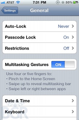 Seit der ersten beta von iOS 4.3 lässt Apple seine Entwickler auf dem iPad neue Multitouch-Gesten mit vier und fünf Fingern testen. Leider werden es diese Gesten nicht in die finale Version von iOS 4.3 schaffen. Spätestens mit iOS 5 im Sommer darf dann aber sicher damit gerechnet werden. Boy Genius Report präsentiert nun einen Screenshot aus den Einstellungen eines iPhone, der nahelegt, dass diese neuen Gesten auch auf das iPhone und den iPod touch gelangen könnten. Demnach soll Apple intern die neuen Gesten bereits testen. Ich persönlich bin da allerdings sehr skeptisch. Die Gesten mit vier bzw. fünf Fingern lassen sich gut auf dem iPad nutzen. Das kleinere Display des iPhone ist hierfür jedoch eher ungeeignet. Nichts desto trotz hält auch Engadget den Screenshot für echt und spekuliert mit einem größeren Display bei den kommenden iPhones. Auch dies halte ich persönlich für unwahrscheinlich. Was ich mir eher vorstellen könnte ist, dass Apple in Zukunft auch die Rückseite des Geräts oder gar die Kameralinse auf der Rückseite als Multitouch-Oberfläche nutzen könnte. Entsprechende Patente wurden hierfür bereits beantragt. Auch die Glasoberfläche des Geräts auf der Rückseite, sowie Apples Bumper für das iPhone 4 könnten ein frühes Indiz hierfür sein. Lassen sie doch, im Gegensatz zu den meisten anderen Hüllen, die Rückseite des iPhone frei und würden somit zumindest theoretisch auch hier eine Bedienung möglich machen. Ein inzwischen aufgetauchtes Video zeigt jedoch, dass sich die neuen Gesten offenbar auch auf dem iPhone aktivieren lassen. Ebenso hat es der Autor geschafft, den Mute-Schalter auch beim iPhone über die Einstellungen zum Rotationlock-Schalter umzufunktionieren. Irgendetwas ist da offenbar im Busch. Die neuen Gesten deuten in jedem Fall auf Apples Bestreben hin, sich über kurz oder lang von Knöpfen an den iOS-Geräten zu verabschieden. Für die diesjährigen Generationen rechne ich damit jedoch definitiv noch nicht.