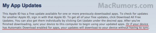 Bis zur fünften Iteration seines iOS-Betriebssystems hat sich Apple Zeit gelassen. Nun scheint ein lange ersehntes Feature endlich Wirklichkeit zu werden. Wer sich in den vergangenen Tagen gewundert hat das der iOS AppStore unter wiederholtem Schluckauf litt, könnte die Lösung in einer von einem Macrumors-Leser entdeckten Passage auf der Update-Seite des iTunes-AppStore finden. Dort hieß es nämlich für kurze Zeit: "Or if your device has Automatic Download enabled for apps, your updates will download to your device without having to sync.". Offenbar hat Apple also schon einige Tage vor Beginn der WWDC im Hintergrund damit begonnen, den AppStore auf künftige automatische Over-the-Air Updates in iOS 5 vorzubereiten. Inzwischen wurde die Textpassage übrigens wieder entfernt, was einer Quasi-Bestätigung der Korrektheit durch Apple gleichkommt. Eine entsprechende Ankündigung ist also durchaus auf der Keynote am kommenden Montag zu erwarten. Offen bleiben indes jedoch einige Fragen, z.B. nach Szenarien in denen mehr als nur ein iTunes-Konto auf einem Gerät konfiguriert ist. Zudem kann es hierdurch (ohne eine dedizierte Bestätigung) dazu kommen, dass neuere Versionen von Apps installiert werden, ohne dass der User auf neue oder weggefallene Funktionen, bzw. Bugfixes hingewiesen wird. Und was passiert eigentlich bei Apps mit Altersbeschränkungen? Fragen über Fragen, auf die wir hoffentlich ebenfalls am Montag eine Antwort erhalten.