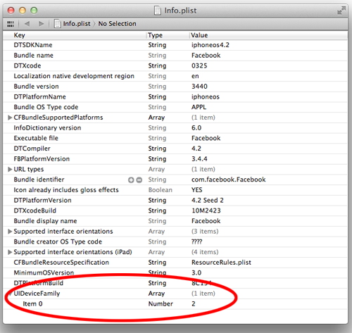 - change the value of "UIDeviceFamily" to "2" (or download and use this info.plist)