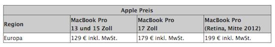 Austausch des Akkus im Retina-MBP kostet € 199,-