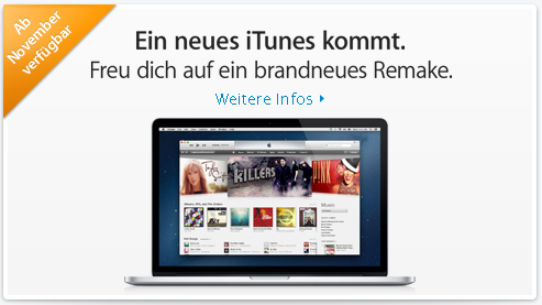 Tja, dabei sah es vorhin noch alles so gut aus. Die Überarbeitungen im mobilen iTunes Store deuteten darauf hin, dass Apple die letzten Vorbereitungen für die Veröffentlichung von iTunes 11 treffen würde. Nun hat Apples Unternehmenssprecher Tom Neumayr gegenüber CNET jedoch bekannt gegeben, dass man offenbar noch ein wenig Zeit benötigt um die Software fertig zu stellen und das Update daher auf den November verschoben habe. Im Wortlaut heißt es: "The new iTunes is taking longer than expected and we wanted to take a little extra time to get it right. We look forward to releasing this new version of iTunes with its dramatically simpler and cleaner interface, and seamless integration with iCloud before the end of November." Allein die Zeitangabe am Ende der Aussage lässt nichts gutes ahnen. Es sieht also eher danach aus, als ob wir uns weitere vier Wochen auf das lang ersehnte Update von iTunes gedulden müssen. Auch wenn die iTunes-Webseitennach wie vor den Oktober ausweisen geben inzwischen den November an.