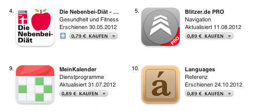 Aktuell tut sich was im AppStore. Wie es aussieht, zieht Apple in Europa nicht nur die Preise für Hardware an, sondern auch die für Apps im AppStore. So werden dort bereits die ersten Apps zum Preis von € 0,89 gelistet (siehe oberen Screenshot). Bislang lag die untere Grenze für App-Preise bei € 0,79. Neu sind teilweise auch die anderen Preisstufen. So erhöhen sich Apps, die vormals € 2,39 kosteten nun offenbar auf € 2,69, Apps die ehemals mit € 7,99 ausgezeichnet waren auf € 8,99. Die Zusammenhänge sind noch unklar. Allerdings hatte Apple gegenüber Entwicklern gestern angekündigt, dass es im Hintergrund Änderungen an iTunes connect geben wird, die die Bepreisung von Apps betreffen (siehe Screenshot ganz unten). Aktuell lässt sich demzufolge auch der entsprechende Bereich in iTunes connect nicht erreichen. Insofern scheinen die Änderungen in der Tat geplant zu sein. Im US-amerikanischen AppStore lassen sich derlei Änderungen momentan nicht blicken, es ist also möglich, dass sie lediglich die europäischen Stores betreffen. Übrigens ist die Erhöhung nicht nur im iOS AppStore zu sehen, sondern analog dazu auch im Mac AppStore (siehe Screenshot in der Mitte).