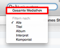 Abschließend noch ein kleiner Tipp für alle, die sich mit der neuen Suchfunktion innerhalb der iTunes-Mediathek nicht so recht anfreunden können. Klickt man im Suchfeld auf das Suchen-Symbol und entfernt denn den Haken bei der Option "Gesamte Mediathek", funktioniert die Suche wieder wie aus früheren iTunes-Versionen bekannt.