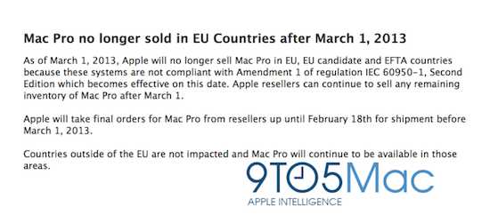Ende des Mac Pro. Sollte es in 2013 tatsächlich ein neues Modell geben, wird dieses ganz sicher auch den neuen Richtlinien entsprechen. Und auch in anderen Ländern darf Apple das Gerät weiter verkaufen.