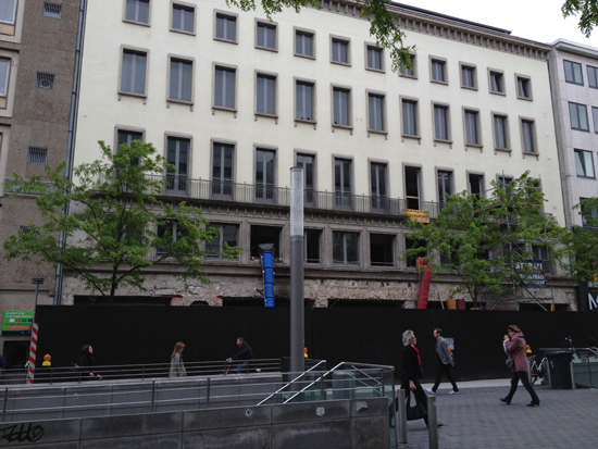 Um die zwei Jahre hat Apple gebraucht, um den neuen Store am Berliner Ku'Damm soweit herzurichten, dass Anfang Mai die Eröffnung stattfinden konnte. Auch in Hannover wird nun schon einige Zeit gewerkelt. Nach einer Phase, in der eher wenig Arbeiten zu erkennen waren, laufen die Bauarbeiten in der Bahnhofsstraße 5 nun wieder auf vollen Touren. Selbstverständlich gut versteckt hinter dem gewohnten schwarzen Sichtschutz. Wie es aussieht, wird Apple aber auch in Hannover, ähnlich wie in Berlin, mehr als nur eine Etage des Gebäudes, in dem früher das Bekleidungshaus Olymp&Hades zu Hause war, umbauen. Möglich ist dabei, dass die Decke zwischen Erd- und Obergeschoss entfernt wird und damit ein ähnlich hoher Verkaufsraum wie auch in der Hauptsadt geschaffen wird. Dies lässt auch das Gerüst an der Außenwand vermuten. Spinnt man das Ganze noch weiter, wäre theoretisch auch ein weiterer Zugang über die Niki-de-Saint-Phalle-Promenade (dem Hannoveraner eher unter dem Namen Passerelle bekannt) auf einer tieferen Ebene der Fußgängerzone möglich. Noch lässt sich schwer abschätzen, wie lange in Hannover noch gebaut wird. Sobald sich etwas tut, werde ich aber natürlich berichten. Vielen Dank an dieser Stelle an meinen Leser Bahar für das unten zu sehenden aktuelle Bild von der Baustelle.