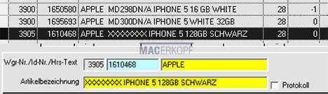 Auch ein zweites gestern aufgekommenes Gerücht erfuhr kurz darauf eine wundersame "Bestätigung". So listet das Warenwirtschaftssystem des Media Markt aktuell ein "iPhone 5 128 GB schwarz". Merkwürdig ist allerine schon, dass es sich um ein iPhone 5 handeln soll. Allerdings fehlt dem Eintrag auch eine eindeutige Produktnummer. In Anbetracht der Tatsache, dass auch das iPad mini im vergangenen Jahr vorab an gleicher Stelle mit falschen Preisen und Speicheroptionen aufgetaucht war, kann davon ausgegangen werden, dass es sich lediglich um einen auf den Gerüchten basierenden Platzhalter handelt.